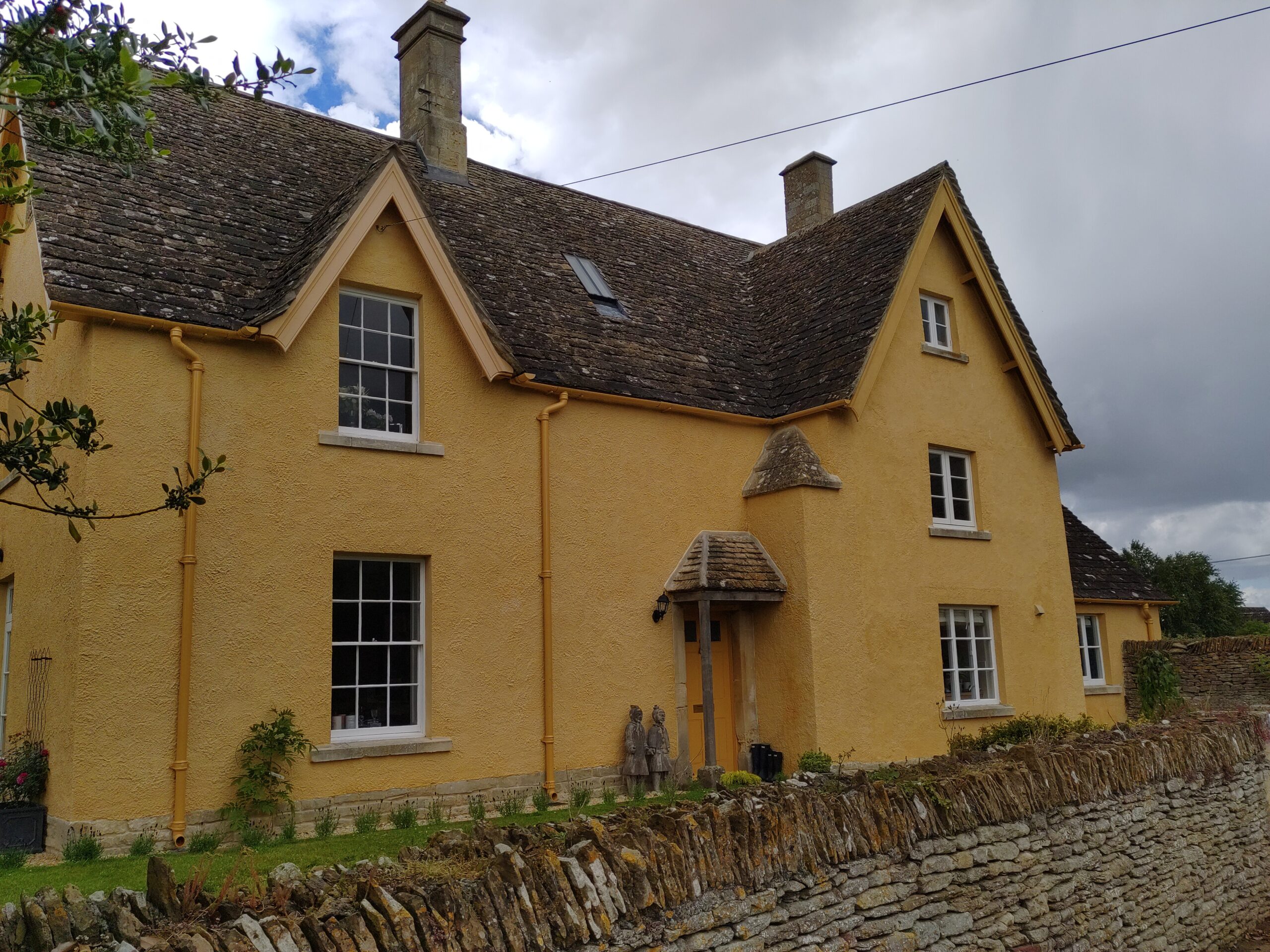 A rendered property in Coaley with a scraped finish done with lime putty, hydraulic lime and lime washed afterwards.