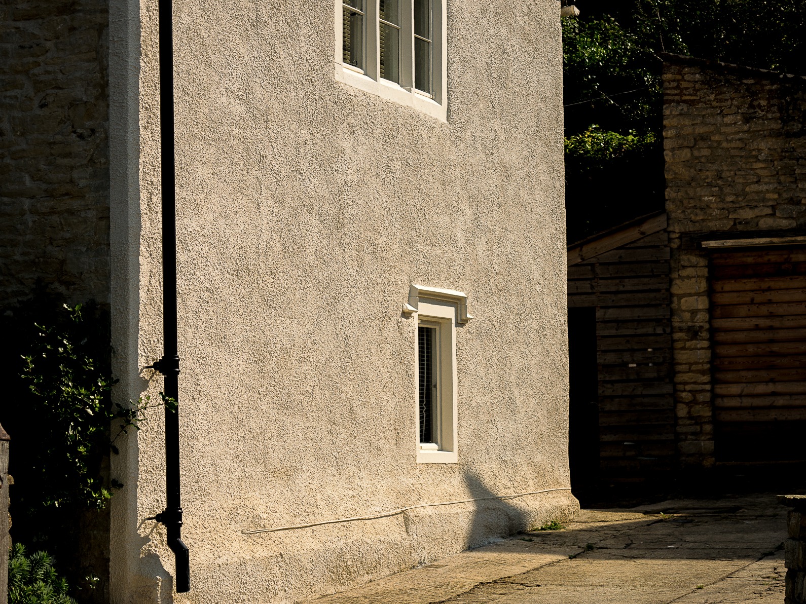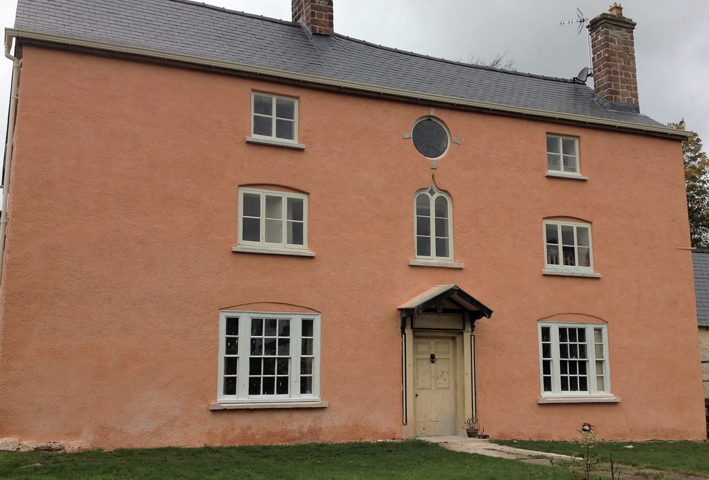 Farmhouse rough cast and lime wash.