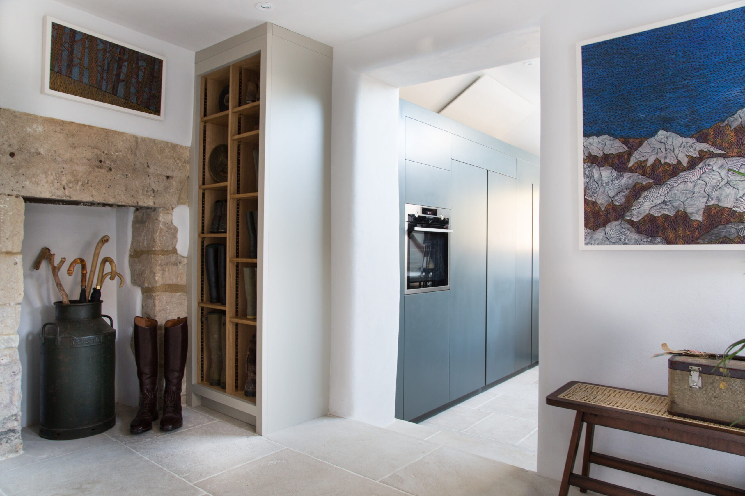 An old barn conversion in Selsley, Stroud. Finished using lime plaster on the walls and Lath and plaster on the partitions.