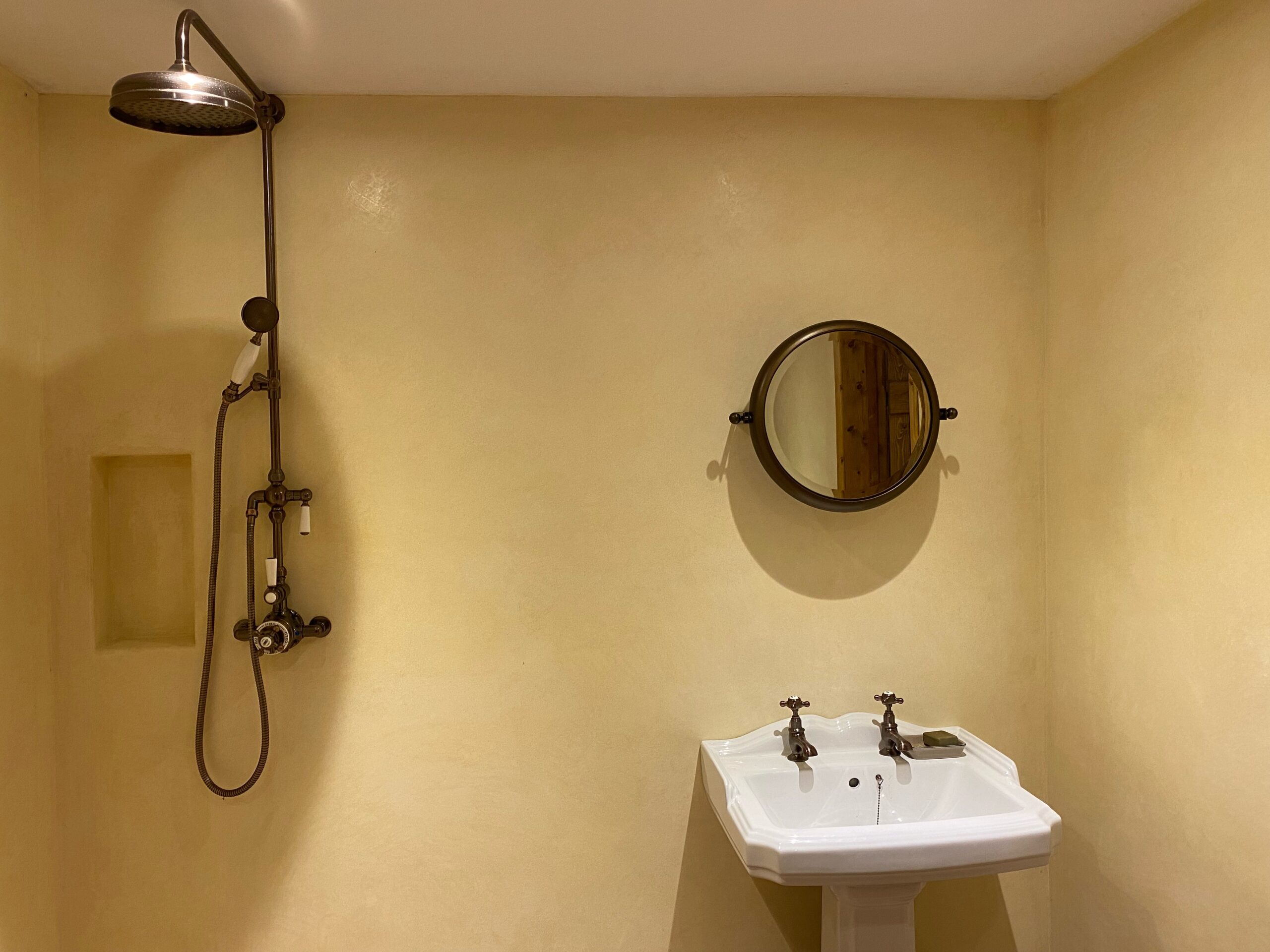 Moroccan Tadelakt plaster bathroom in Saul, Gloucestershire.
