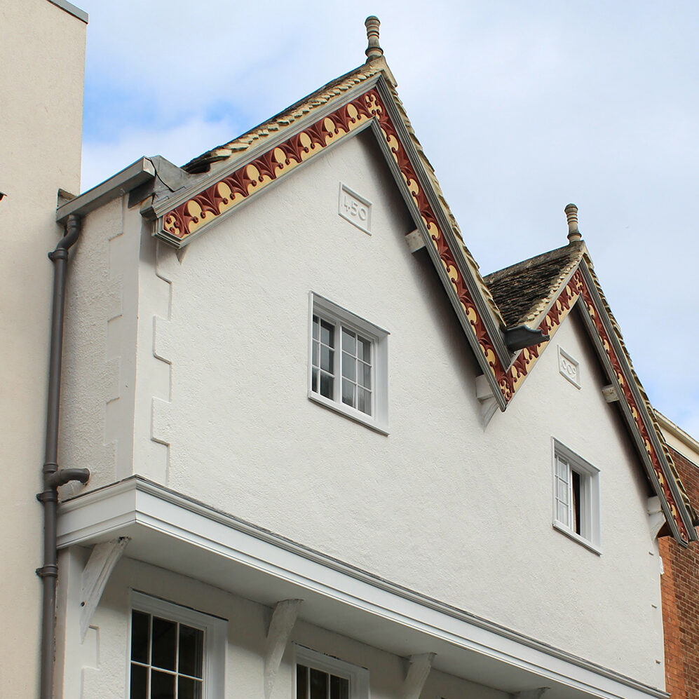 Restoring a damaged facade that features on the Heritage Trail in Gloucester, Grade 1 listed. Render repairs and re lime washed.